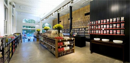 玛格丽特河巧克力店位于澳大利亚的珀斯,这是由前爱德华七世的银行改建而成的,灰色水泥幕墙被改建成巧克力店面,在宽敞的室内空间内展示出五颜六色包装的巧克力和美味的食品。