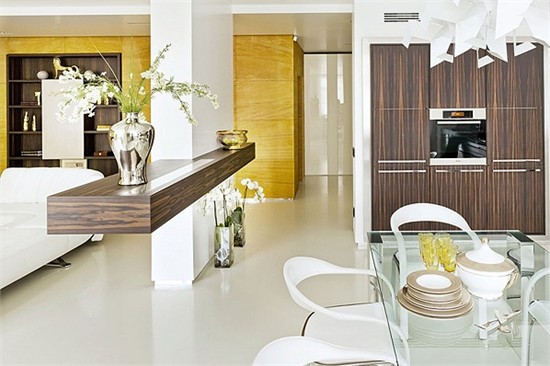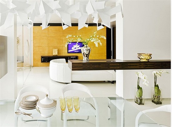 这座美丽的公寓,坐落于莫斯科,内饰的设计相当的简约精致,独特的白色墙壁和地板,不同寻常的组合。
