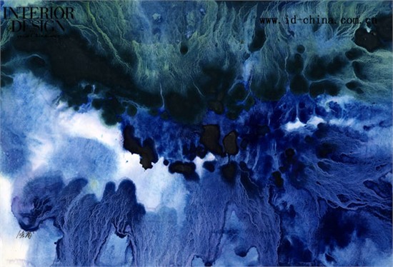 另一代表作《海境》,观后仿佛觉得游弋在时光的海洋中,穿越了无数令人激动的时空,突然间来到了一个没有引力、悄无声息的幻象之地,这里的风景奇异而又瑰丽,眩目而又神迷,水与色的结合恰到好处,好似触动了心中那条久未感动的神经,真实走入了另一个神奇的世界。东方绘画追求“妙在似与不似之间”的意境,讲究笔墨神韵,讲究散点透视,讲究计白当黑,在这里都得到了全面的体现。没有技巧的呈现却又无不体现着高妙的技巧——风景的描绘走入了自由的王国,品位高下,尽在画中,更在画外。