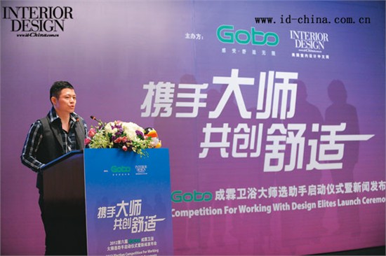 2012 Gobo成霖卫浴“大师选助手”设计新锐选拔赛启动仪式,于2012年5月22日晚在上海外滩半岛酒店隆重举行。大师选助手活动创办于2007年,旨在关注年轻设计师的成长,搭建设计大师与新锐设计师的交流平台,不断推动室内设计行业的发展。本届大师选助手活动由国际知名卫浴品牌 Gobo、美国室内设计中文网、美国室内设计中文版共同举办,初赛和复赛环节在美国室内设计设计中文网进行,最终入围60强选手与12位设计大师于8月18日齐聚海南三亚参加决赛,获胜选手将进入大师公司工作。