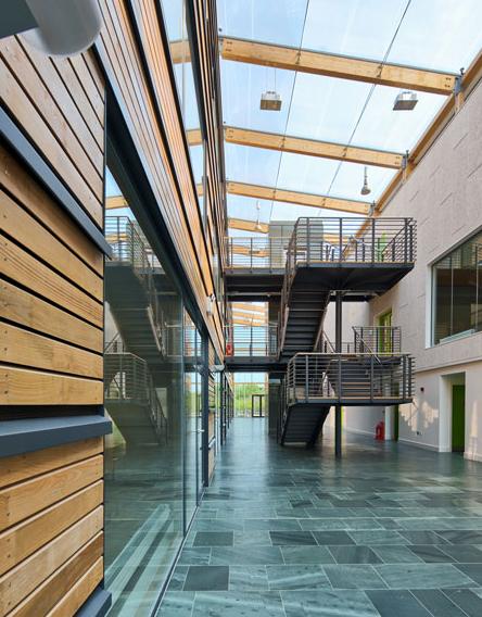 建筑的立面使用可持续性的木料搭建,由三座建筑组成。孵化器楼有着54个灵活的商业单元,中间是一个安装了EFTE顶棚的“街道”,所有的小公司都可以在“街道”上展示他们的产品;第三座建筑是一座弯曲的楼体,容纳了一个可容纳300人的讲演厅以及一座咖啡馆和会议设施等。