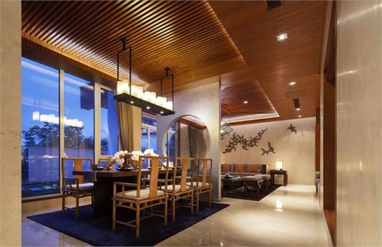 尚溪地A14中式别墅,设计师赋予空间一种简素的空间氛围,又同时显露一种隐士情怀。大隐于市,悠得自然可谓项目最好的诠释。此外,文化的共生思考是设计师一直秉承的设计要素,在对传统文化反思的同时,演变重组,融入当代艺术元素演绎中式传统表情,提升空间整体意韵。