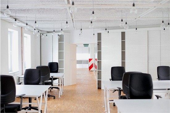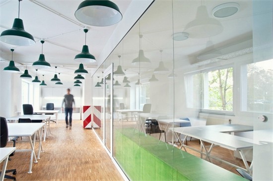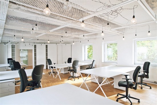 一个功能齐全的空间,良好的采光条件,灰色白色的组合,不可抗拒的内饰,轻盈透明的装饰材料,开放性的办公空间。