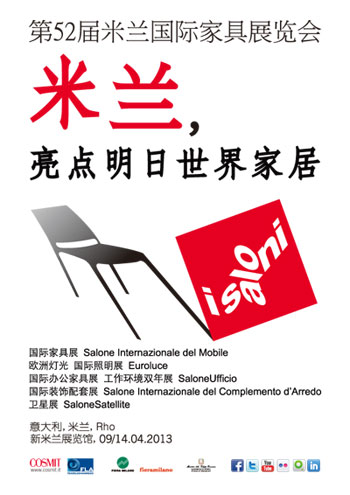 “米兰 - 亮点明日世界家居”是即将于2013年4月隆重举行的第52届米兰国际家具展(Salone di Milano)的标题,展览包括:家具展、装饰配套展、欧洲之光照明展、办公家具展和第16届卫星展。