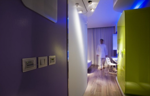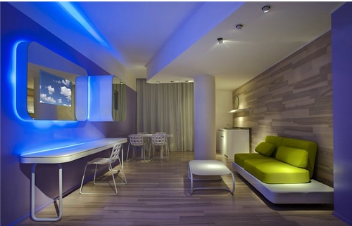 这是一家位于米兰的L'Hotel酒店,一个生态环保的氛围,室内的树木装饰,弥漫着大自然的气息,轻松、和谐的氛围。