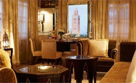 La Mamounia酒店是一座骨子里沾满了历史气质的酒店,延续了摩洛哥式的贵族奢华,糅合了伊斯兰风格及西方建筑的独特设计,那种美感是现代化的豪华酒店所无法媲美的。著名的La Mamounia酒店,被誉为非洲的七星级酒店,酒店位于摩洛哥的古都马拉喀什,建于1923年,原是一处皇宫,融合了华丽的摩洛哥风格与装饰艺术风格。时至今日,这里还处处遗留着昔日贵族的遗风。
