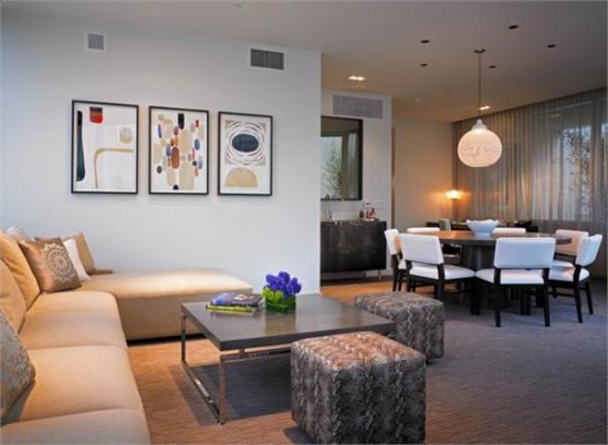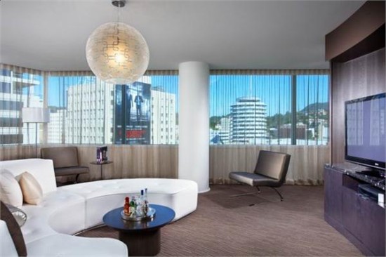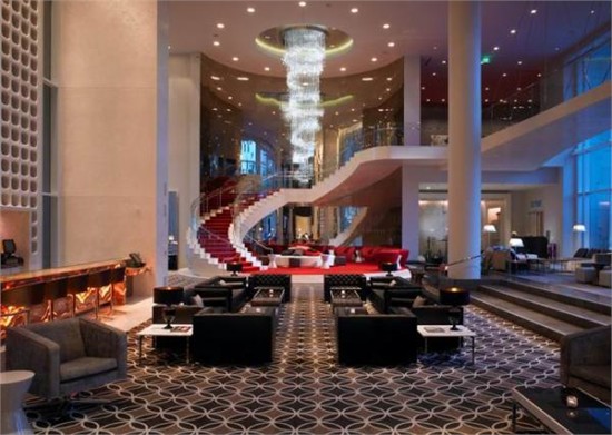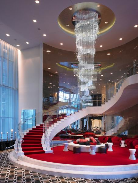 W好莱坞(w hollywood hotel & residences)位于美国好莱坞大道6250,临近公共交通服务站,是一个奢华的概念化酒店。酒店由世界级专业设计室Dallas-based architecture firm HKS以及景观设计师哈勒工作室提供灵感。豪华红地毯直达酒店大厅,带给客人如名人般星光熠熠的好莱坞时尚待遇。露台和一楼休息室的黑色真皮沙发、休闲椅可供客人休息,大厅里壮观的螺旋形白色大理石台阶,鲜明的吊顶灯照耀着弯曲的青铜背景马赛克墙,格外奢华。露天屋顶游泳池,摩洛哥装饰的酒吧和镀金天花板的夜总会,让人沉醉在迷人的夜生活。