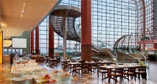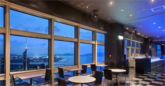 位于日本福冈的Hilton Fukuoka Sea Hawk酒店室内极具优雅与现代的装饰风格。