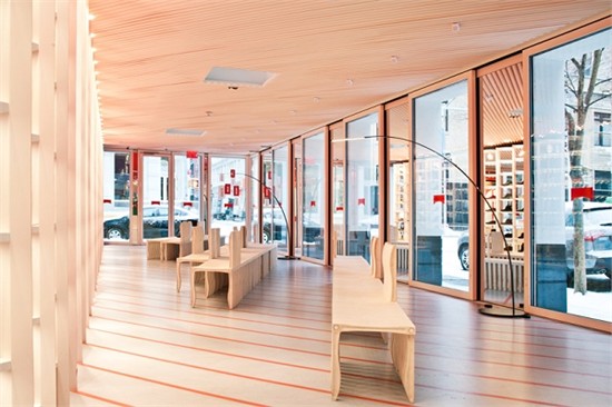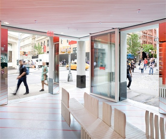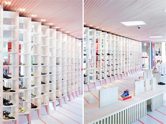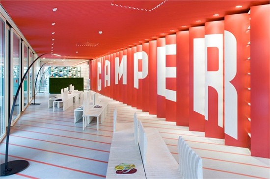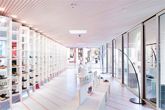 在纽约新开的 SOHO camper 店是由日本建筑师坂茂设计完成。整个空间像一个长廊,运用大胆的色彩,给人以视觉上的冲击。