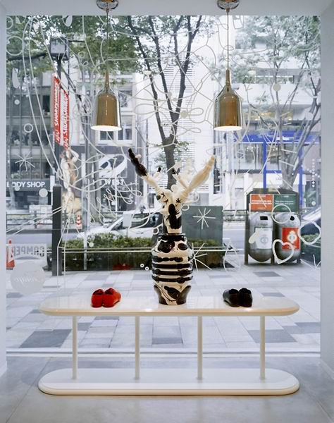 这是一家位于东京的Camper Shop,是由Jaime Hayon精心设计打造的。灵感来自经典马戏元素,这是一个全新的色彩和幻想。空间是充满了生命和光,邀请人的梦想。水泥地面,墙壁布满完美和细腻的装饰,一个充满惊喜的空间。