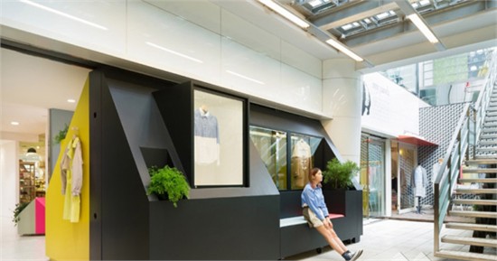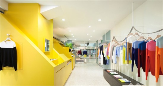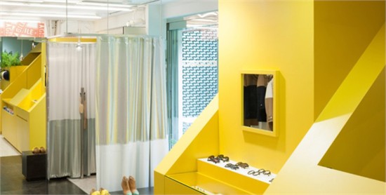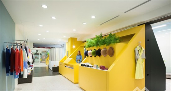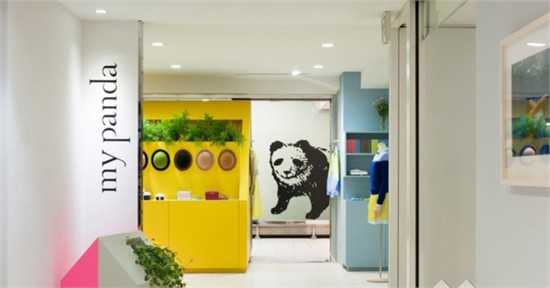 位于日本涉谷的熊猫零售店是由日本torafu architects设计的,室内特色分明:综合了两种颜色曲线,给人强烈的视觉冲击。颜色的二重性也是分布空间布局分界线,外部黑色主要用于产品展示,而内部黄色设计区域才是商品细节区域,在进门处的走廊墙面上特别绘画出一个熊猫,吸引顾客。
