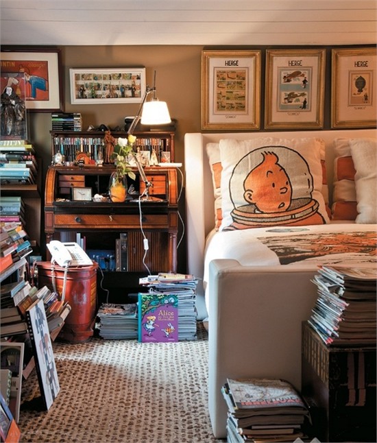 如果你是一个看书如痴的孩子,你可以看看居住在巴西里约热内卢的建筑师Chicô Gouvêa的家,几乎在每一个画面都能找到书的影子,而且是大面积的。不仅仅藏书,还有超多超多的公仔,难怪三层楼约250平方也不够他放吧。