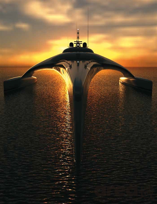 “阿达斯特拉(Adastra)”是五年多艰苦设计和与船主探讨的结晶,目的是为了建造一艘游艇,用以满足一对经验丰富的航海夫妇和他们家庭的需求,并提供这个级别和尺度的游艇所应该提供的舒适和格调。为了挑战这艘漂亮的、低油耗、高适航的豪华游艇,各方面都是不遗余力。“阿达斯特拉”采用了动力三体船的概念,但是比以往所有的尝试都更超前了一步。从前的三体船如“地球竞赛”号和“有线和无线冒险家”号都是用于破纪录的,所以奢华设施都无一例外地被剔除。将这种三体船的概念转化为一种可行的豪华游艇所面临的挑战迫使我们继续深入地进行研究并针对这种船体在海面上的稳定性和舒适性开发出新的思路。我们对这种船舶的模型进行了大量的水槽试验和无线电遥控模型波浪试验,以便对稳定性和性能进行分析。
