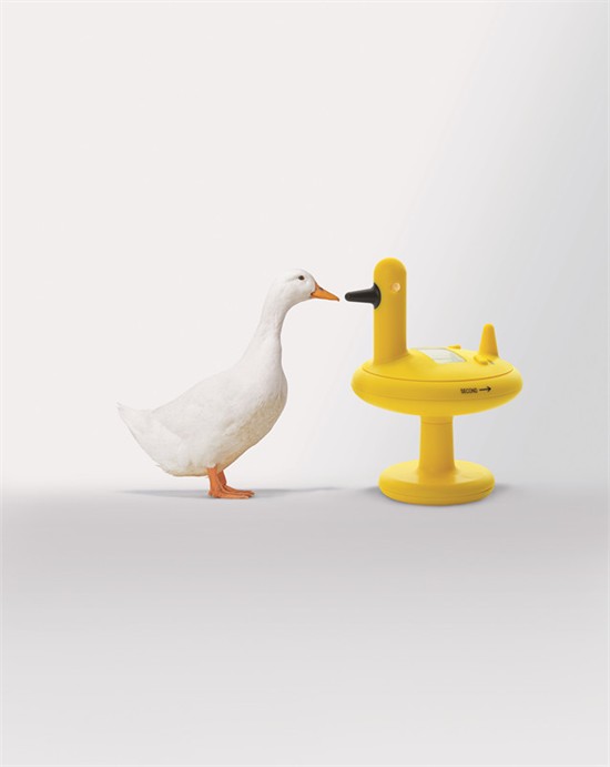 埃罗阿尼奥又一次证明了他的创造力,带来了独一无二的设计,创造了一个幽默和彩色的厨房计时器,这款鸭子形状的厨房计时器,当设定时间到时,便会发出鸭子嘎嘎的叫声来作为提醒,兼具有趣和实用的功能。