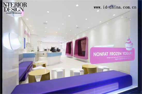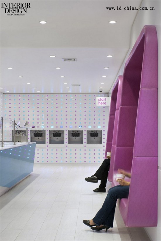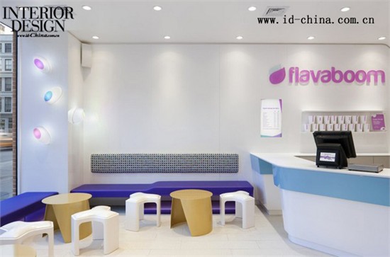 Flavaboom冻酸奶店由Dune设计,位于纽约曼哈顿。这间设计独特的酸奶商店是间超现代的未来主义实验室。巧妙的色调十分讨喜。1500平方英尺的商店大量装饰灯光吸引着路人。精心挑选的设计材料包括:动感的粉色人造皮革,紫红色镜子与其他有趣元素充满空间,营造着独特的氛围。材料不易毁坏,生态良心意味着无需重新整修。