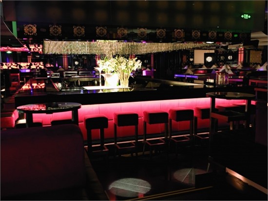 这是一家位于上海的CK BAR,一个充满魅力的空间,炫目的灯光照明。