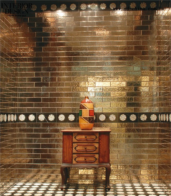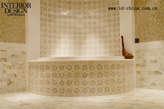 展厅内另一款让世人惊叹的作品便是LAVA 铂金,经由24K 纯铂金烧制而成。这款产品生产工艺非常复杂,Mr.Yalding 曾多次往返国内外,与多位专家不分昼夜地潜心研发,最终成功投产并获得国家专利,跻身为公司的荣誉产品。迄今为止,再建集团是世界上除意大利一家公司外,唯一一家拥有此生产工艺的公司。LAVA 铂金的成功,不仅是Mr.Yalding 个人的骄傲,更是再建史册上又一个无上光荣的里程碑!Mr.Yalding 选用LAVA 铂金,并搭配水刀小画做点缀,浅色小画衬托出LAVA 铂金的高贵气质,正所谓低调的奢华。在这个结构严谨的画面中,水刀小画将生活趣味化,堪称神来之笔。星星点点的灯光打在上面,让人不由陶醉其中。置身其中,感受到的是上流社会的奢华。铂金的闪耀,带给人的视觉效果是雍容华贵;这一刻,让时间沉淀激情、让空间闪烁灵感的生活态度,拥有世间独一无二的美景。