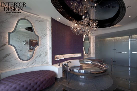 进入顶级惊喜套房,夸张别致的造型、华丽的色彩与闪亮的镜面设计逐一映入眼帘。从门口的云石吧台开始,即刻引领宾客发掘惊喜,从美轮美奂的渐变色天花到豪华客厅,客厅内设有专门订造的书桌、一体式DJ设备,以及一盏闪烁生辉的吊灯,宾客无论处理日常起居或举办派对均游刃有余。套房选料精致奢华,包括光滑如镜的天花、专利的皮质嵌板、中性色调的石质地板、淡雅的白色云石餐桌、专门定制的Moooi焚迹木椅,以及柔软舒适的意大利皮革家具。客厅内摆设两张时尚的B&B Italia黑色皮革扶手椅,配衬豪华的紫红色L形沙发。而金属花卉装饰及奇特的动物工艺品则为套房增添一丝大自然气息,与顶尖的现代设施相映成趣。
