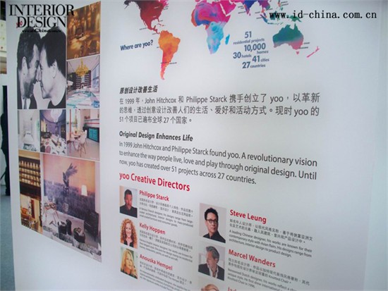 yoo 亚洲区董事总经理彭子安先生说:“yoo由国际房地产企业家约翰•海奇考克斯 (John Hitchcox) 和设计大师菲利普•史达克 (Phillppe Starck) 于1999年共同创立。自创立以来,吸纳了世界顶尖的设计师组成了明星级设计团队,旗下的创意总监除了菲利普•斯塔克 (Phillppe Starck),还包括凯莉•赫本 (Kelly Hoppen)、马赛尔•万德斯 (Marcel Wanders)、洁德•洁格 (Jade Jagger) 和安诺斯卡•汉姆百奥 (Anoushka Hempel)。我们很高兴梁志天先生正式成为yoo的一份子。巧究细致的亚洲设计风格日渐影响全球的设计。我们深信出色的设计能提升生活质量,透过Steve Leung & yoo品牌打造不同的国际项目,共同实践卓越的设计理念,为发展商和住客建构出更受欢迎又不断升值的精美家居和酒店,达至三赢的局面。 ”