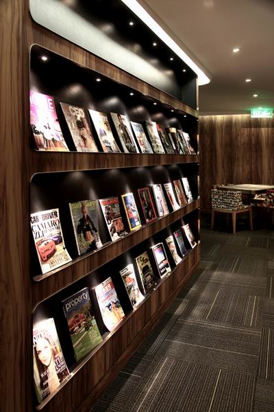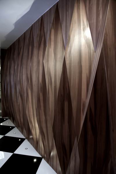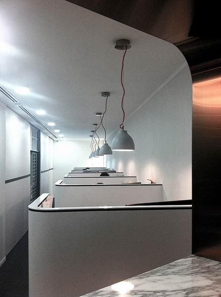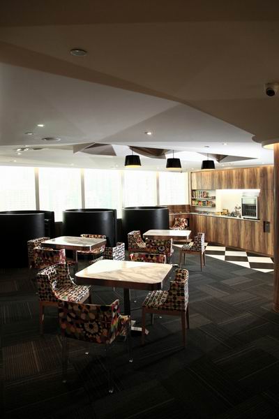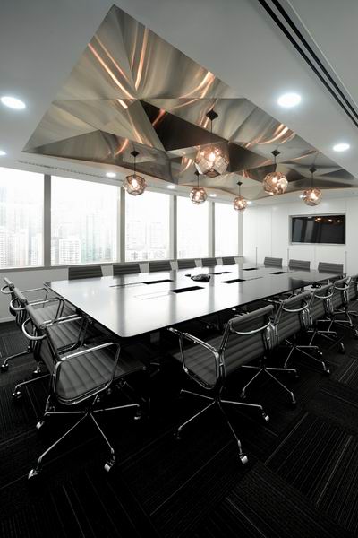 这是一家从事财务印刷的公司。走廊墙壁丰富的折纸式褶皱很有品味,将光影的明暗交织表现的恰到好处,地灯犹如小钻石镶嵌在棋盘上。办公区域的天花板同样采用了折纸艺术,立体感强烈。休闲区域家具与照明的搭配十分上档次,香浓醇厚。