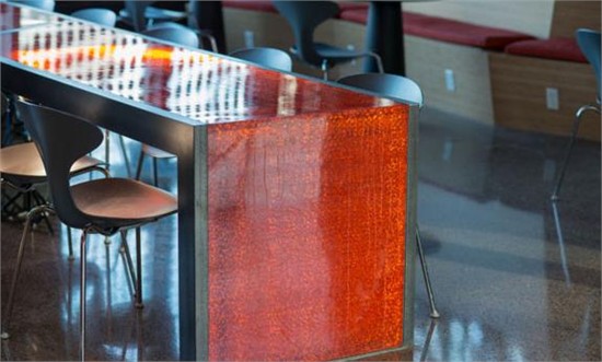 学院的建筑和室内设计系的学生帮助设计了底层的咖啡馆。学生希望咖啡馆能够服务于晚上出去游玩归来的人们,因而咖啡馆是对公众开放的。中间的大桌子如同寒夜升起的火焰,吸引着学生坐在这里探讨各种话题。餐厅和健身中心将由三个学校的学生共享,即麻省药学院、麻省艺术学院和Wentworth学院。
