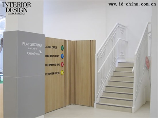 为营造轻松愉快的教学环境,学校室内改用暖色调及强烈触感的基调,搭配饶有趣味的五彩箱形墙并贴上纤维墙纸和隔板。整栋大厦的平面设计均贯穿着生动活泼这一主题,部分区域绘有花鸟图案,缤纷夺目。接待室静谧舒适,是接待家长的重要场所。走进接待室,首先映入眼帘的是漂亮的动植物图案,以纯白为底色,籍以凸显图案的缤纷色彩。
