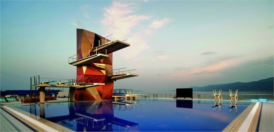 里耶卡奥林匹克中心(Rijeka Olympic Centre)的这座新的跳台有5块跳板,根据国际泳练的规则安装在不同的高度上。