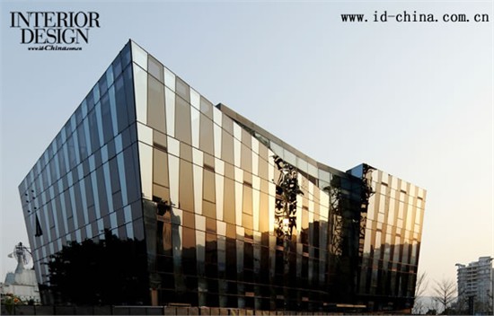 倾斜的外立面由两种不同颜色的玻璃构成的几何图形装饰着。由于深圳的特殊气候条件,安装在底楼和四楼全景露台的此种玻璃外立面可以完全敞开,有序的串联室内的公共区域和周边景观。