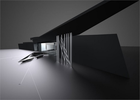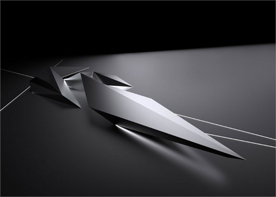 zaha的草图已经很好的表达了她的设计,借助这一媒介,建筑师能够自由的研究形式,发展实践自己的建筑语言。最初,hadid研究了kazimir malevich的艺术作品,和俄罗斯先锋艺术家作品中的翘曲和反重力空间,将破碎和抽象的概念转化成建筑空间。借助现代建模技术,我们可以把hadid草稿上的二维线条和平面渲染出来,做成3D模型。“prima”就是这一过程的直接体现;如果将2D草图发展成一个可行的空间。它由五个高度抛光的部件组成,由复合材料制作,外皮涂了一层金属饰面。每个尖角平面重达300到500 kg,可以自由移动,组成不同的配置。反光表面上海设计了参观者座椅,被LED灯照亮。装置尺寸为11 x 8米。