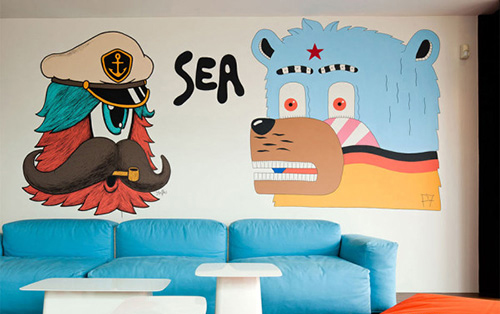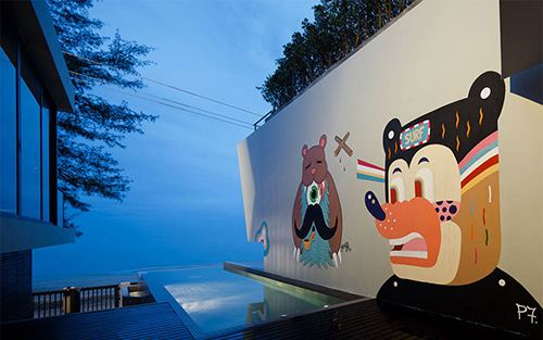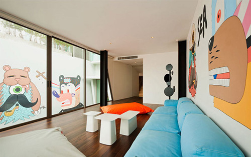 由Onion公司设计的这个”熊房子”(Bear House)位于泰国,最大的特色应该是暴力熊的应用,有一种主题公园的感觉,墙、玻璃,茶几,岸台,都有它的身影,还有一面摆满各种限量版暴力熊的橱窗。主题式的家居,另类,时尚,还带有一点点的童心未泯。