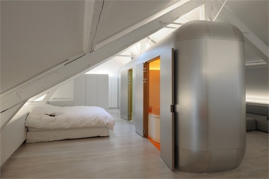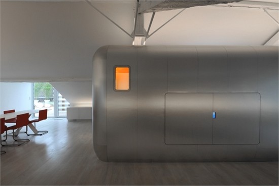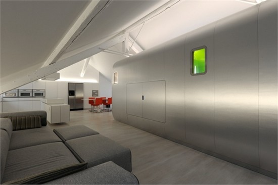 为了满足业主对精密工程的浓厚兴趣,当地建筑事务所dethier architectures在位于比利时的一座重新设计的loft公寓中插入了一个高科技构筑物。