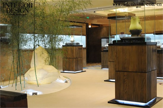 盈时拍卖,继2012年推出四王吴恽后又一次重磅出击,坚持以少求精,以质求甄的原则,在业界引起级大震动。当晚成交的藏品多在百万、千万以上,甚至有的藏品近亿。面对如此珍贵的藏品,我们在做设计的时候如履薄冰,怎样才能体现厚重传统文化与当代中国文化的融合。竹子、石头、毛毡、老榆木成为了本次设计的主选材料。在一千平米的宴会厅里要8小时搭设才能完成。不能破坏原宴会厅的装饰是一个较大的难题。在设计时我们采用中间两岛,四周用整面墙的手法,包裹了原有的装饰。嵌入珍贵藏品。展台跟据空间和藏品的变化,做到了高低错落。