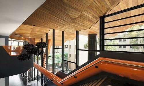 拉筹伯分子科学研究所(LIMS)是拉筹伯大学邦多拉校区的一座新建主楼,其建成将满足各科系学生们学习和研究的长期需求。Lyons建筑事务所在澳大利亚建筑师学会举办的一次设计竞赛之后获得了设计委托任务。设计标书中一个主要部分是要求项目实施之后在建筑设计上和校园的形象上都产生“变革”的效果,而此前的校园无论在建材还是高度上都是按照严格的设计指导方针建造的。
