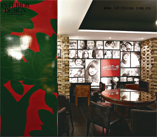 色彩与灯光对于设计表现、氛围营造起着至关重要的作用。在以砖头、原木的灰白色调为主调的基础上,设计师大胆使用深红色的木制餐椅、夸张的吊灯和店面招贴系统,活跃空间氛围,不断带来惊喜。