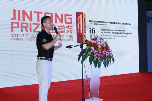 活动上,金堂奖发起人、中国建筑与室内设计师网董事长谢海涛登台为大家解读了2013年金堂奖的重磅新举措,他说:“2013是金堂奖走上国际舞台的历史性一年,也是金堂奖组织机构合力升级设计服务内容的绽放之年,金堂奖全力打造设计师国内国际推广服务平台。”