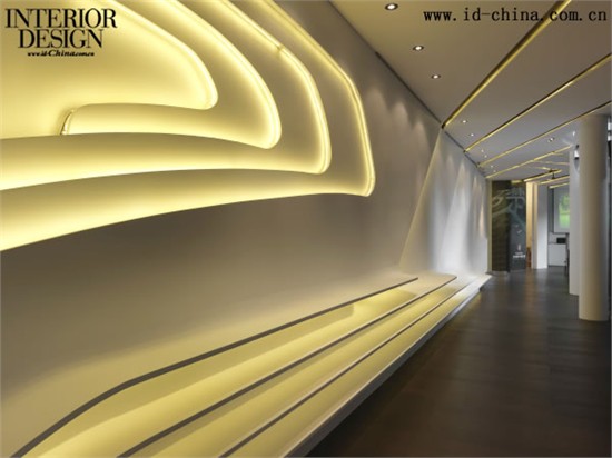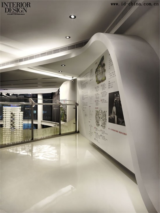 人在空间中如何找到应有的定位,同时跳脱传统建筑物与使用者之间的互动行为,是Modus在进行室内设计时考虑的首要问题。Modus决定通过空间隐藏的指示性语言来带动视觉重新定义每一个使用分镜,室内跳跃的造型线板吸引着观者,并串连了不同性质的空间,仿佛潮水般将暖流拉高又瞬间推远。与此同时,Modus引进了大面积的自然采光,增加光影与空间的对话,并与柔美的照明效果相融合。介于大厅与模型室的旋梯如同海洋漩流,将视线引至二楼的会谈与视听空间。无论是远观还是近距离的触摸,每一位观者都可体验到沉浸在海洋中的愉悦与舒适。
