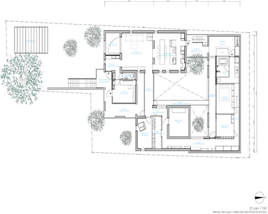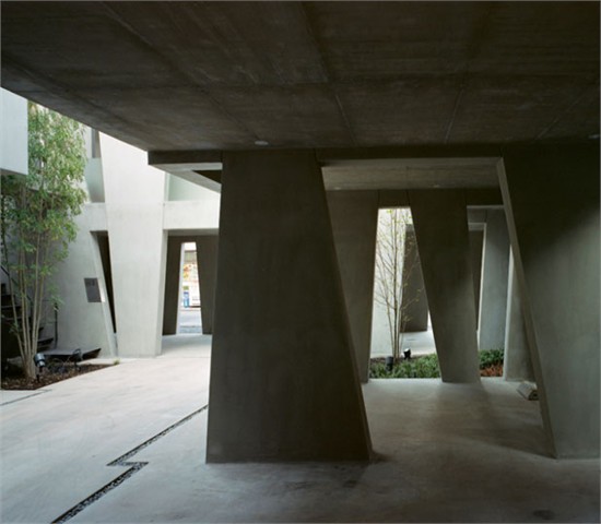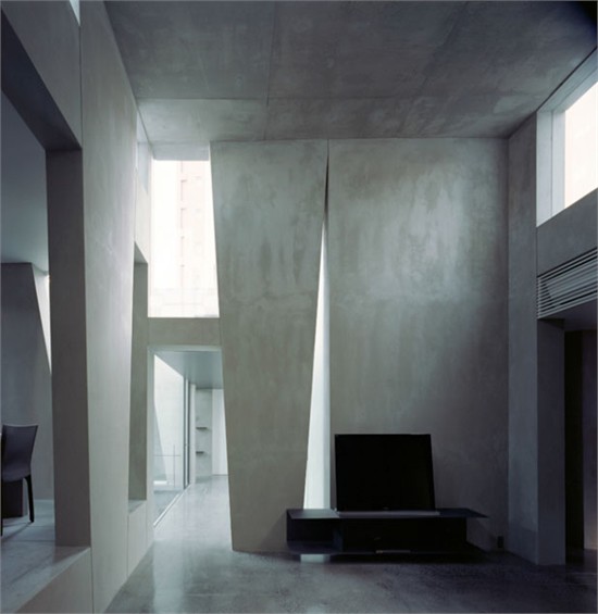 在东京高层公寓密集的地区,Airscape建筑事务所设计了一所住宅,纪念曾经长在这里的榆树。这个地块南部还留有一棵,这个位于八王子卫星城的树屋,线条抽象了自然界树木姿态,希望成为都市中的混凝土构造的绿色之所。几何式的钢筋混凝土结构为住宅蒙上了一层冷色调,底层架空的地方是停车空间,并且还起到了隔绝视线的作用。建筑效果也十分具有光学效应,让建筑少些城市烟火气,更加接近自然。建筑外立面开窗变化多样,裂口处透出条条光芒。住宅内饰上,依然采用简洁的语言,有些地方灵活地倾斜,平衡了玻璃窗和建筑之间的关系。屋顶的天窗让室内充满了散射光。