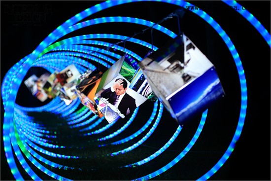 每一天都是新的一天,每天都有不同的记忆,设计师通过破裂的玻璃和七彩的灯光,营造出一个时光隧道。不同的光色代表不同的心情,不同的记忆,不同的年龄段。人们穿梭在隧道里,或许会想起某时某刻那些逝去的时光碎片。