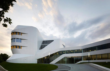 斯特加特的虚拟工程中心(ZVE: Centre for Virtual Engineering)地处Fraunhofer IAO的研究园区,专门从事跨学科的工作流调查。UNStudio设计的这座中心将研究潜力扩大,对新的工作环境和产生工作环境的设计手法有了扩展的认识,通过新型的办公楼激发了沟通、实验和创造性。
