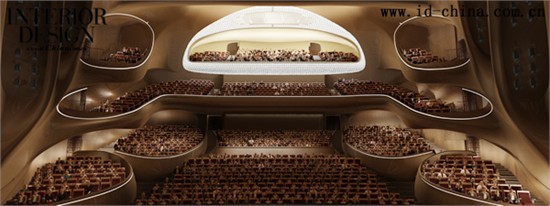 大剧院建筑的外表面为特制的纯白色铝板,部分墙面也采用了白色的石材和混凝土,给人以冰雪般纯净的感觉。观众厅顶部天窗的自然采光设计,在白天可以完全满足室内照明,既节能又可以营造出特殊的光影氛围。大剧院由大小两个剧场组成,大剧场可容纳1600人,由底层池座和两层楼座组成。内部空间运用了大量实木,一方面为大剧院观演厅提供最好的声学效果;另一方面,这些实木形体与白色墙面形成冷暖色调对比,透出雪山木屋特有的温暖氛围。剧院的舞台设计不但适合西方歌剧和现代戏剧的表演,也可以满足中国传统戏剧的观演要求。声学和灯光的设计提供了高水准的内部环境。由亚克力曲面灯体包裹的二层贵宾席通透闪烁,像巨大的星体漂浮于剧院穹窿之下。舞台部分为标准的品字形舞台,配合多功能升降设计的乐池,可满足歌剧舞剧等大型演出的需要。内部与大剧场贯通一体的400座的小剧场以表演话剧、室内乐、戏曲为主。后台幕墙开启式设计让舞台背板可以像宽幅屏幕般展开,以自然为背景,让室内外景观融为一体。而室外的水面部分也更可以作为室外观众席,打开幕墙的舞台便成了无遮挡的全景舞台。独创性的设计赋予了大剧院空间宏大而细腻的戏剧性效果,以适应现代剧场艺术的创新与多变。