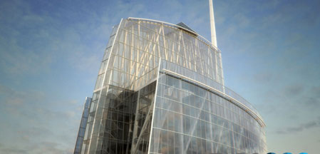 不过时代已经改变,新技术将采用更为坚固的建筑核心和高速电梯,使得摩天楼更加安全。看上去,这座大厦如同一座风帆或者翅膀的一端。