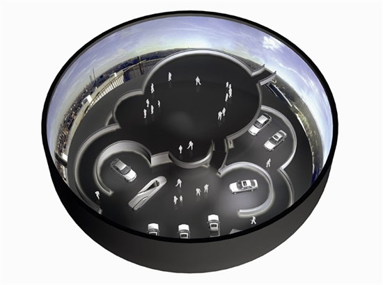 维也纳建筑师Karl Schwanzer对于博物馆建设的基本思想是“街道周围建筑空间的延续”。未来的银色建筑,表面上非常封闭,里面看上去清新大方。通过上升盘旋的坡道,参观的人可从五个表面上看上去独立的展览平台进入。
