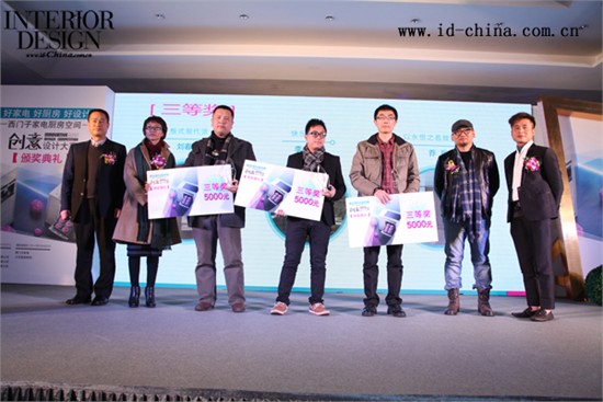 接着,大赛公布了三名三等奖获奖设计师名单,由深圳室内设计师协会理事单位(HRD)董事长、设计总监吴文粒、2012年大中华区十佳设计师、山艺空间设计(香港)/总设计师 薛守山、2006年度中国十佳住宅设计师、名匠装饰总设计师 康永鲜颁发奖杯,博西家用电器(中国)有限公司广东区域渠道拓展总监 徐建俊颁发了奖金牌。