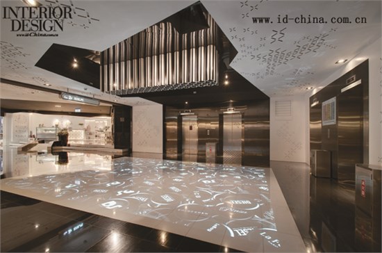 设计师在主要电梯厅的入口,设置交互式多媒体技术,在不同的时段播放各种投影内容。当消费者进入卖场,便能第一时间感受到时尚Gallery 的定位,从而引导消费者参与其中,体验不同领域的空间感受。设计师放弃过往设计商业场所的习惯,在寸土寸金的营业面积中,切割出提供文创艺术发声的舞台。使用大量的黑色与局部的白色,在视觉上区分出不同格调的空间,并规划了长达60 米的艺术橱窗。而每个橱窗的面积与形状都不一样,藉此为艺术创作者提供足够的发挥空间。卖场中央作为主要的营业区域,陈列着多样化的商品,各专柜面积因商品及营业需要,作了明确的切割。在视觉规划上,却是以一个大型的卖场作考虑,避免因专柜数量,造成空间过于零碎。在各个空间的转折处,都设置了顾客休息区,利用不规则切面的造型以及不同高度的变化,提供给消费者休息、购物以及等候的过渡功能。