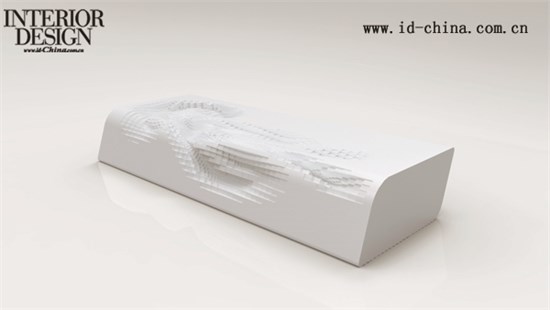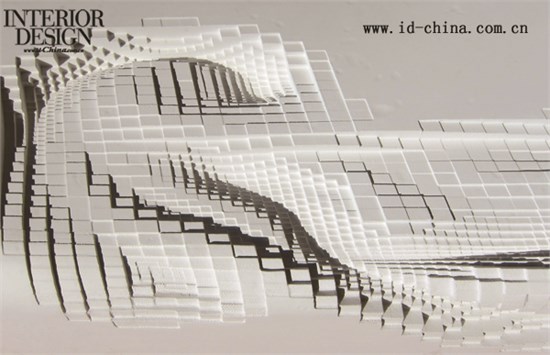 更有意思的是,侵蚀后的空间成为力场自然留下的痕迹。为了打破表面的连续性,我们通过编程技术把表面像素化“化曲为直”,意味着通过改变坚硬面的尺度,当非常小的时候,是有可能建立连续渐变的。这样的处理也给三维数控加工带来了挑战,要求加工的精确性和边角的锐利。