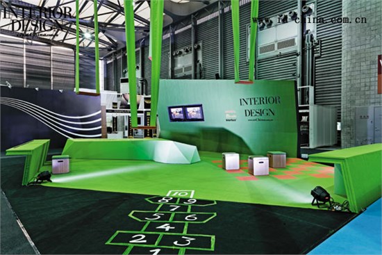 INTERIOR DESIGN 自1932 年创立至今已经有80 多年历史,HASSELL 今年也已经有75 年历史,因为同样悠久的历史,促成了合作展位的意向。INTERIOR DESIGN希望以回顾和展望为概念出发点,赞助品牌sunbrella 希望体现户外环境,结合这两个设计要求,HASSELL 创意设计了“在同一片天空下”的展位。展位所有布料由sunbrella 提供,地毯由Interface 提供。