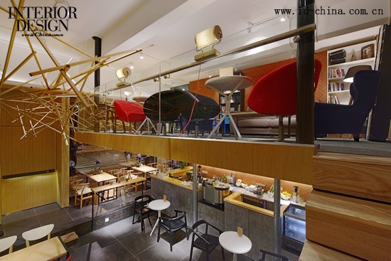 沿着木头的楼梯上到二楼,这是一个适合朋友聚会的空间。绒布的沙发,蓝色、棕色、红色,各种色彩融汇交织,舒适又温暖。射灯迷蒙的光线洒落空间,似实而虚的光亮让空间笼罩在慵懒之中。在墙壁延伸出的空间里,放置上书本,有着和书架异曲同工之用。慢象咖啡厅充满着时尚气息,和谐丰富的色彩使空间不显沉闷。在这样一个地方,可以放松心情,忘却繁杂,让你沉浸在咖啡的香气中,沉溺在悠扬的音乐里。
