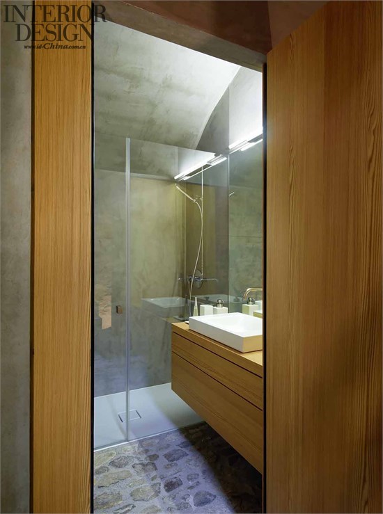 几乎整个建筑外维护结构都在欺内部配备了保温混凝土构件,这样能保证结构的稳定性,并提高保温系数。多亏了屋面具有这种高标准的保温系统、控制通风系统、热回收系统和大面积的太阳能收集系统,住宅才会符合瑞士严格的可持续结构标准。简单的外部设计在内部得到回应,裸露的混凝土墙、原有石材砌体和抛光的水泥都定下了这一基调。