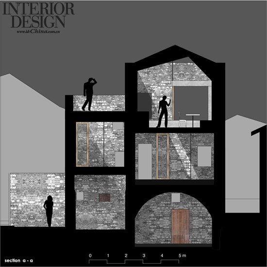 这个设计一方面保存了见证房子历史变迁的石头外观,另一方面,它通过特殊的光线反射给室内引入天顶光。否则,在这样一个村庄的结构和狭窄的街道下是很难以其他方式实现自然采光的。水泥地板,石灰石墙壁、天花板,上油的落叶松木门窗,与现有的陈与旧实现了协调。该翻新项目不是拉起与现存建筑之间的差异,而是新旧结合,创造一个全新的整体。