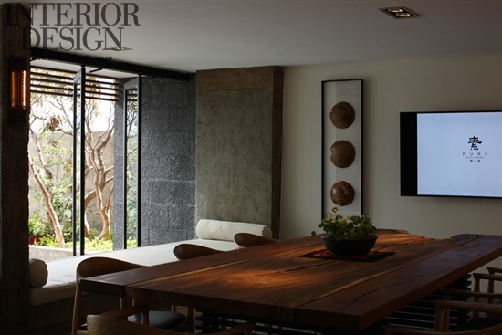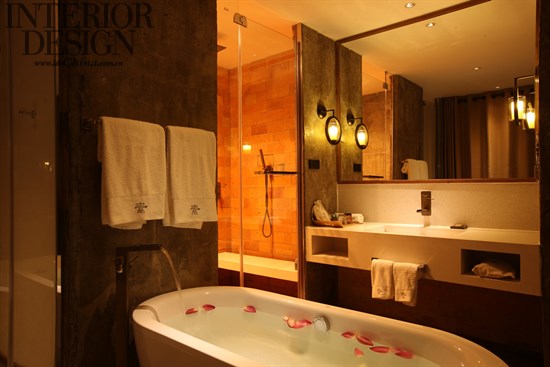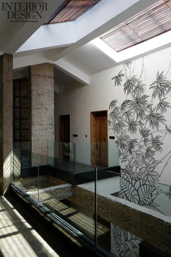 踩着老青石做的汀步迂回进入室内,便到了酒店接待和主要的公共活动区域。受限于建筑原有墙、柱的阻隔,空间并不方正、完整,但反而激发了设计师如泉的巧思、将空间善加利用,打破传统功能空间生硬的划分形式,将接待、品茗、香道、书吧、餐饮、会议及精品店等功能空间有机的组合在一起,用家具、片墙、层架等手段进行限定和划分,使得空间过渡自然、层次丰富而有序。同时在空间设计中借鉴了传统园林借景、框景的手法,让室内各处均具有良好的观景视线。